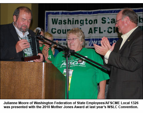 All of these awards will be presented at the Washington State Labor Council’s 2011 Convention, which is scheduled for Thursday, Aug. 4 through Saturday, Aug. 6 at the SeaTac DoubleTree Hotel.