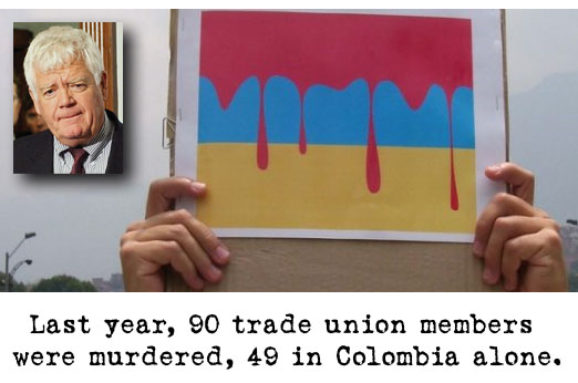 - Murder of unionists in Colombia with impunity. In May, 2 labor organizers where murdered in Colombia-during the period when Colombia was supposed to be addressing these issues to move the Free Trade Agreement forward. Pending FTAs have no enforceable labor rights. They have principles only with no tangible ways to protect workers and labor organizers.