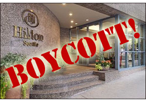 UNITE HERE Local 8 says the boycott will be in effect until the hotel agrees to protect workers’ jobs if the hotel is sold. Click here for a list of hotels on the national AFL-CIO’s Do-Not-Patronize list at the request of UNITE HERE. (The Seattle Hilton boycott request does not yet appear on that national list.)