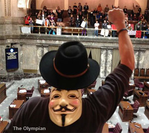 Here’s a roundup of news coverage of Monday’s Occupy the Capitol protests. (Click here for more information about continuing actions this week in Olympia.)