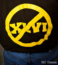 ► In today’s NY Times — Line of scrimmage forms over union bill — The city of Indianapolis is in full preen for its moment in the spotlight, its first Super Bowl. But in the Statehouse a partisan fight over union strength has boiled over. “It’s a forum for this to get out beyond the state of Indiana, for the world to know what’s happening to workers here in Indiana,” said Mike Gillespie of Teamsters Local 135. He wore a T-shirt that bore the numerals of the Super Bowl, XLVI , with a slash through them, a message people here interpreted in various ways.