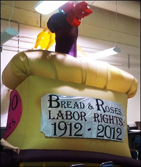 It's finished! Come see the new Bread & Roses float yourself at the May Day March & Rally on Tuesday, May 1 at Seattle's Judkins Park.