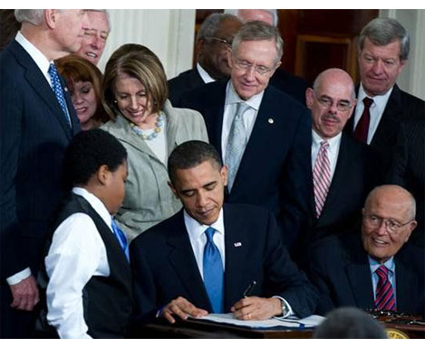 President Obama signs the Affordable Care Act into law on March 23, 2010.