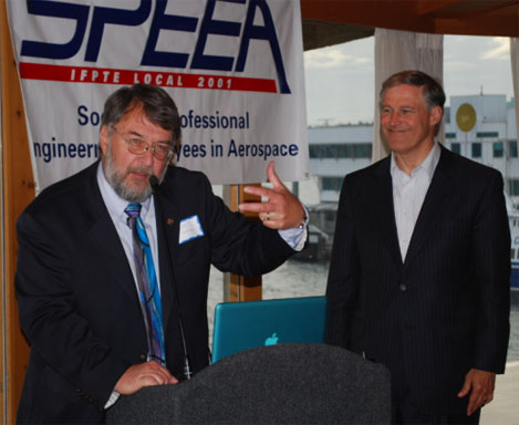Jeff Johnson, President of the Washington State Labor Council, introduces labor’s endorsed candidate for governor, Jay Inslee.