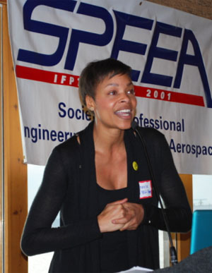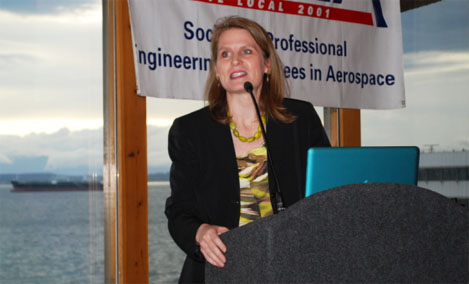 Thursday’s “Sunset Cocktails on the Sound” was organized by the Society of Professional Engineering Employees in Aerospace/IFPTE 2001, which invited representatives of Viking Robotics, a Ballard High School-based robotics team sponsored by the union, to demonstrate a robot that shoots baskets.