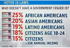 ► In today’s Washington Post — What happens if GOP’s voter suppression works? (by Harold Meyerson) — What should Democrats do if Romney comes to power on the strength of racially suppressed votes? Such an outcome and such a presidency, I’d hope they contend, would be illegitimate — a betrayal of our laws and traditions, of our very essence as a democratic republic. Mass demonstrations would be in order. So would a congressional refusal to confirm any of Romney’s appointments. A presidency premised on a racist restriction of the franchise creates a political and constitutional crisis, and responding to it with resigned acceptance or inaction would negate America’s hard-won commitment to democracy and equality. The course on which Republicans have embarked isn’t politics as usual. We don’t rig elections by race in America, not anymore, and anyone who does should not be rewarded with uncontested power.