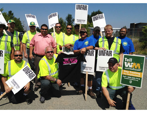 ► At Teamsters117.org — Waste Management continues to sabotage bargaining process — The Union agreed to take down picket lines on Monday if the company demonstrated a willingness to engage in meaningful bargaining on Saturday. Waste Management would not commit to bargain in good faith. The company also attached conditions to Saturday’s meeting with the Union, including a demand that workers immediately forgo their lawful right to picket and provide a seven-day notice before resuming any picketing activity. “In our last two meetings, Waste Management committed to bargaining in good faith and failed to do so,” said Tracey A. Thompson, Secretary-Treasurer of Teamsters Local 117. “We’re supposed to trust them now and take down the pickets? Before relinquishing our rights, we need a full-fledged commitment from the company to bargain in good faith.”