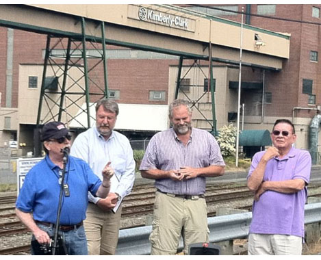 Labor, political and community leaders held a “Bring Jobs Home” event Monday at the former Kimberly-Clark mill site to call for passage of H.R. 5542, the Bring Jobs Home Act, which could be voted upon in Congress as soon as this week. The legislation would eliminate tax breaks allowing companies to deduct expenses associated with moving operations overseas, while still encouraging them to assist displaced workers. It also would provide a tax credit to corporations that bring jobs back to the United States.