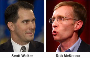 EDITOR’S NOTE — As we pointed out earlier this week, Rob McKenna has deliberately distanced himself from Wisconsin Gov. Scott Walker and embraced collective bargaining rights when speaking to reporters. What’s alarming is that, when challenged by his party’s right wing, he sings a different tune, vowing to change collective bargaining laws. And when he doesn’t realize he’s being recorded, he tells his supporters that public employee unions are “dangerous.” That double-talk on fundamental union rights is legitimately alarming and does indeed recall Scott Walker’s own double-talk where he tells reporters he’s only trying to balance the budget, but was caught privately telling a right-wing financier that his ultimate goal is to “divide and conquer” labor and enact “right-to-work” laws that destroy Wisconsin’s unions. You’ll excuse us, PubliCola, amid unprecedented Republican attacks on union rights nationwide, if organized labor in Washington remains skeptical of Rob McKenna’s public campaign-season assurances that he’s different.