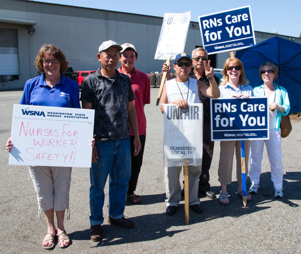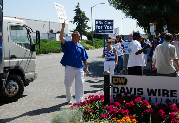 That’s what a group from the Washington State Nurses Association decided on Thursday, spending part of the day in the 93-degree heat showing solidarity on the picket line with striking Davis Wire workers in Kent.