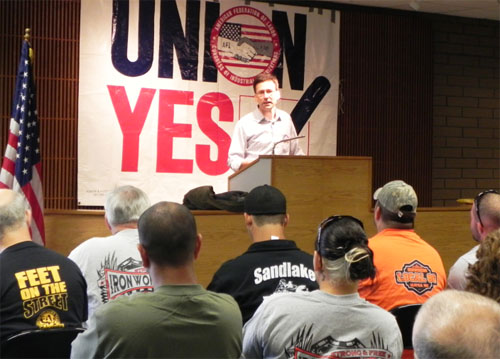 Labor’s endorsed candidate for Attorney General, Bob Ferguson, thanks volunteers at the IAM Hall in Auburn before the Sept. 15 Super Walk.