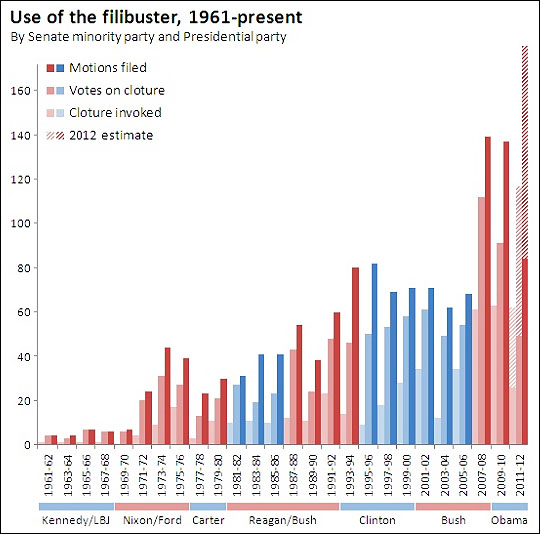 ► In The Hill — Filibuster reform may sway debt talks — Senate Republican Leader Mitch McConnell (Ky.) is warning that Democrats could blow up fiscal-cliff talks by threatening to force a controversial rule change at the start of 2013.