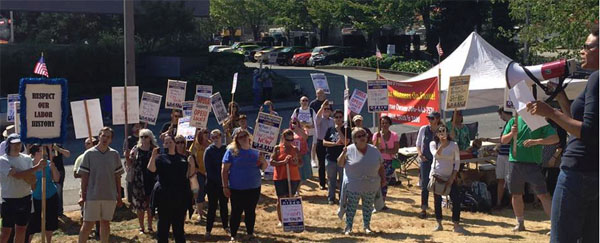 TAKE A STAND — These folks have been on strike for more than three weeks now. Please call Welfare & Pension Inc. owners and tell them to settle a fair contract NOW: 1-800-732-1121 or 206-441-7574; Richard Kafer at ext. 3940; Dennis Kirkpatrick at ext. 3920; and Tony Ibrahim at ext. 3100. Also show your solidarity with these OPEIU members by joining their picket line at the WPAS office at 7525 SE 24th St. in Mercer Island. Pickets will be active from 7 a.m. to 5 p.m. Monday through Friday until the contract fight is satisfactorily resolved.