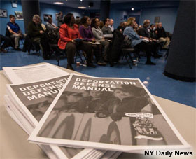 ► In the NY Daily News — N.Y. Teamsters form ‘sanctuary union’ to fight ICE agents — Across Long Island and throughout the city, some 120,000 Teamsters are getting prepped to become a “sanctuary union.” In 27 shops, business agents, supervisors and front-line workers are getting schooled on their rights under U.S. law — and when and how to challenge federal immigration agents who show up to search their work sites. The training is complex and technical — hinging on specific types of warrants and the definition of a raid. But in fundamental labor terms, it follows one simple rule: Union solidarity first, immigration status second.