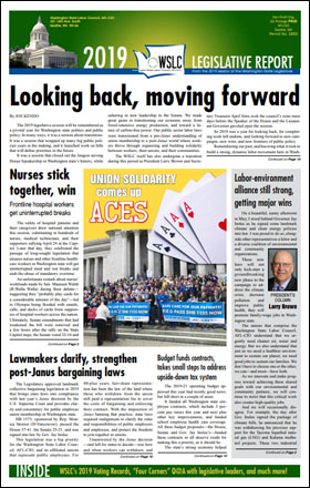 The WSLC 2019 Legislative Report includes many more articles on rest breaks for nurses and frontline caregivers, post-Janus collective bargaining laws, the state’s biennial budget, non-competition contracts, protecting immigrant workers, the new long-term care public benefit, building trades issues, and much more. Download the full 10-page PDF to read them all, or request the printed edition or call 206-281-8901 to order multiple copies.