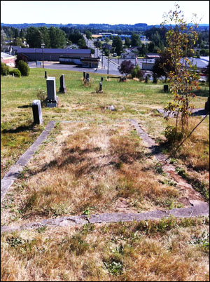 Thirty years ago, a local resident purchased the old cemetery as a volunteer project to restore it so the buried would not be forgotten. The dark trees were removed and the thick brush was pulled out one square foot at a time, revealing almost a hundred previously hidden headstones. Twenty-six house-sized piles of brush were burned to reveal the burial grounds.