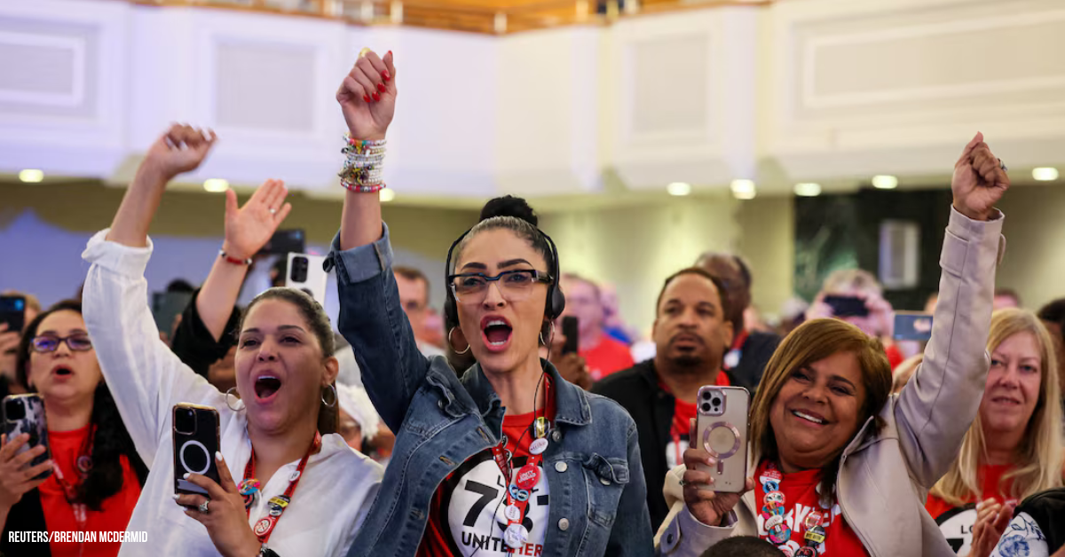 ► From Reuters (July 24) – Hotel workers in four US cities to hold strike authorization votes – Workers at 125 hotels in the four cities have sought significant pay raises in new contracts to replace ones that have expired or will expire soon. “We are getting ready,” said Elena Duran, a server at Marriott’s Palace Hotel in San Francisco. “Seeing the proposals from the hotels, people are not happy.”