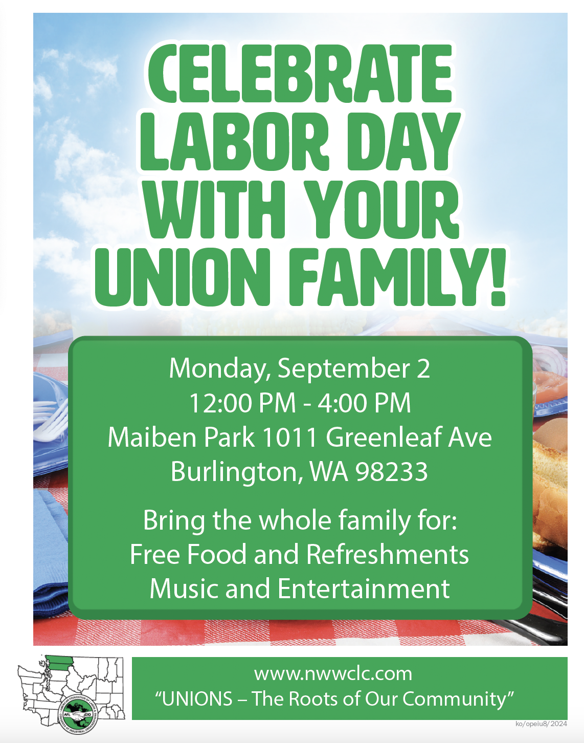 SEATTLE, WA (August 28, 2024) — Labor Day is just around the corner, and Washington’s Central Labor Councils (CLCs) are gearing up to celebrate. First celebrated by unions more than 140 years ago, Labor Day is an opportunity to lift up the foundational contributions of working people to this country — and an opportunity for many working people to spend time with loved ones.