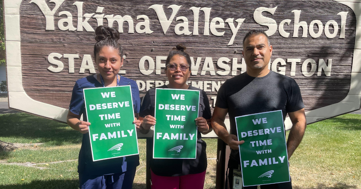 Per the union, closing these two facilities would jeopardize the safety, health, and dignity of the disabled persons served by these care facilities — and remove valuable care services from the region — while overwhelming community systems that are not fully equipped to meet their needs. The Yakima Herald Republic reports that Gov. Inslee’s budget proposes some residents could be moved to other residential care facilities in the state, raising fears that residents would be moved far from family and friends.