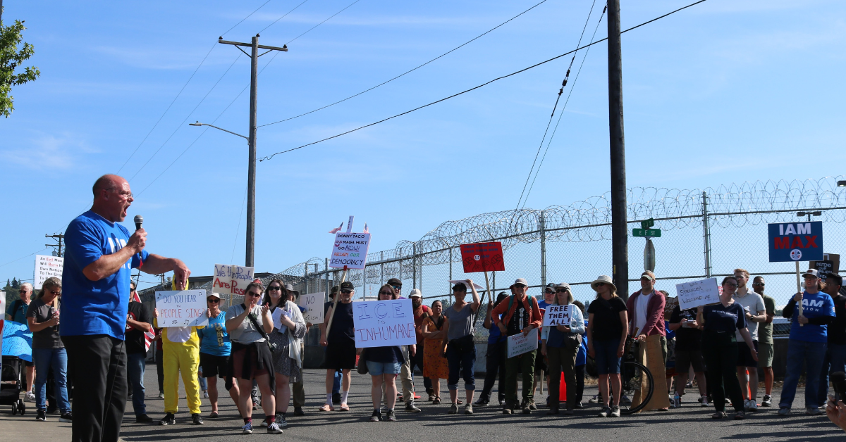 TACOMA, WA (June 9, 2025) — Over a hundred union members, community supporters, and Machinist leaders joined the family of Maximo Londonio outside the Northwest Detention Center (NWDC) on Friday to call for brother Max to be released and returned to his loved ones.