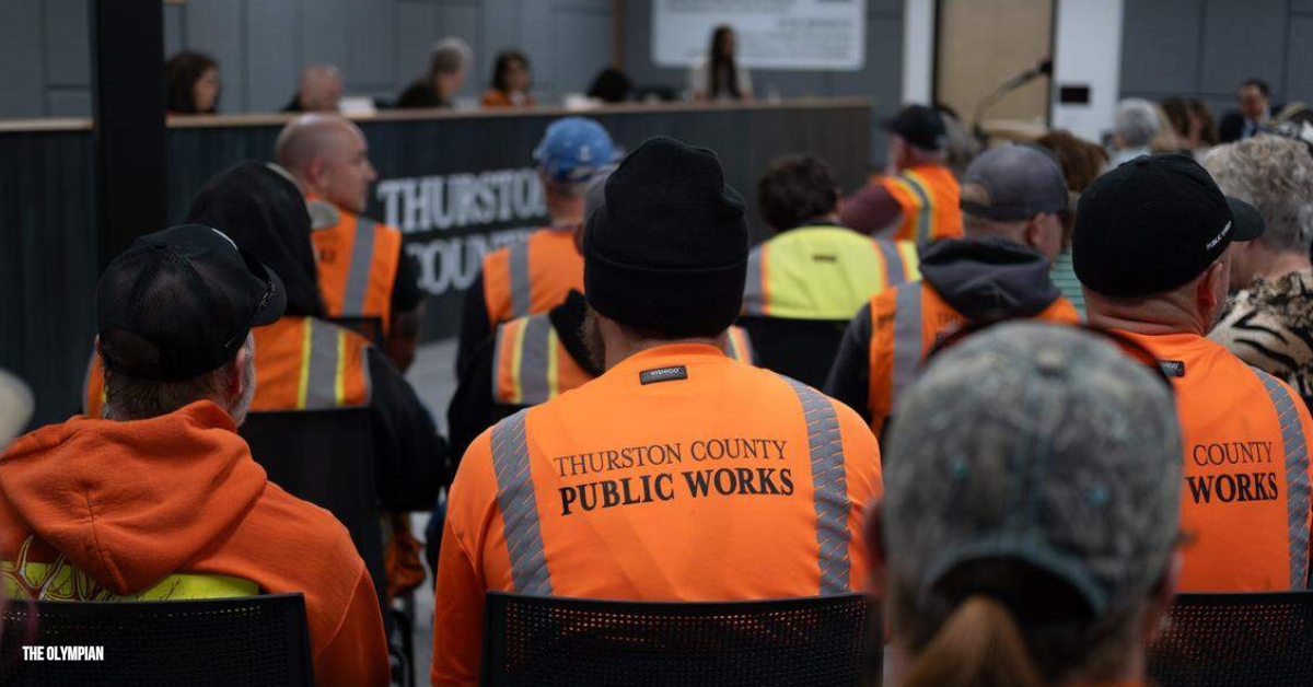 ► From the Olympian — Thurston County road workers, allies deliver workplace grievances to commissioners — Earlier this year, former county road workers accused leadership of creating a toxic work environment. The county responded by contracting an outside investigator to look into their complaints. Meanwhile, current workers approved a vote of no confidence in management, namely Roads Operations Manager Mike Lowman and Supervisor Nick Bemis…Tonya Sullivan, president of Local 618, said roads workers feel like their input is often ignored and their concerns are dismissed. She acknowledged that Public Works has made some efforts to address the situation, but she said the root problem persists…Sheree Neumeier, a retired Public Works employee, said Bemis and Lowman made her feel miserable. “I guarantee you, every one of those guys and women in orange put their life on the line for you guys in Thurston County, and you don’t appreciate them,” Neumeier said to the commissioners.