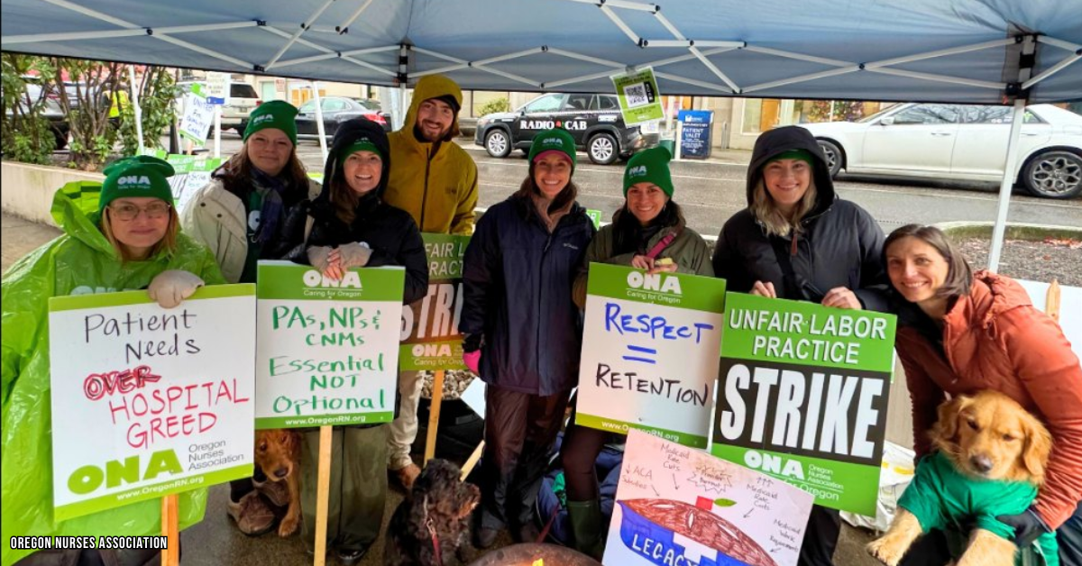 ► From Oregon Live — Legacy Health strike grows as 80 urgent care, pediatric care providers plan walkouts — Eighty medical providers at Legacy Health plan to hold two-day solidarity strikes to support their Oregon Nurses Association-represented colleagues already on strike. About 50 nurse practitioners and physician associates at Legacy-GoHealth Urgent Care clinics plan to strike from 8 a.m. Dec. 21 to 8 a.m. Dec. 23. Another 30 pediatric nurse practitioners and physician associates who work at Legacy clinics and Randall Children’s Hospital plan to walk out from 8 a.m. Dec. 22 to 8 a.m. Dec. 24. They will join the roughly 140 advanced practice providers — including nurse practitioners, physician associates and clinical nurse specialists — who began an open-ended strike Dec. 2. The workers have been trying to negotiate their first labor contract since they unionized in late 2023.