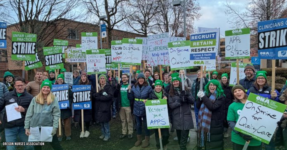 ► From KOIN — Legacy strike ends after unionized advanced practice providers ratify contract, ONA says –Following an almost month-long strike, advanced practice providers have reached an agreement with Legacy Health. The Oregon Nurses Association revealed the employees had “overwhelmingly voted to ratify their first union contract” with the health system on Friday. More than 100 APPs launched an open-ended strike against Legacy in early December, advocating for additional pay, staffing retention and more…The now-ratified contract “includes across-the-board pay raises, accelerated timelines for raises, and new protections for APPs if Legacy makes unilateral decisions about the workplace,” according to ONA.