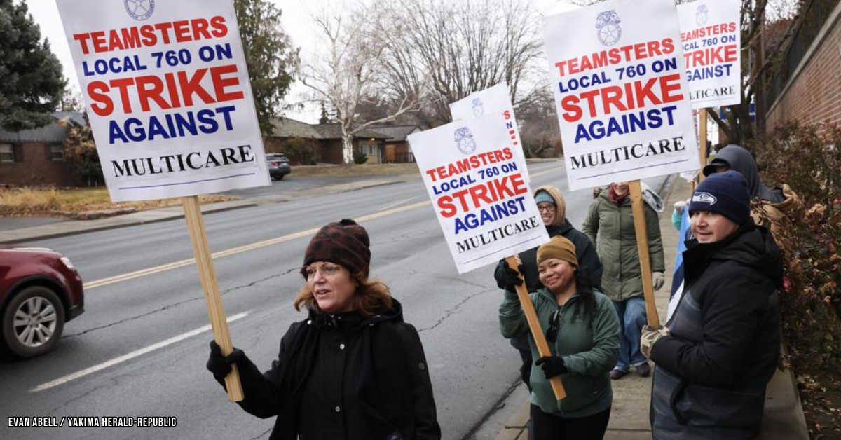 ► From the Yakima Herald-Republic — MultiCare Yakima Memorial Hospital employees start strike — Technical and technologist employees walked back and forth along Tieton Drive on Saturday in 30-degree temperatures, waving signs. Cars drove by honking in solidarity. The Teamsters 760 union has been in its first contract negotiations with MultiCare since the Tacoma-based health care system took over the hospital in 2023. They have been negotiating since February of last year…Teamsters union representatives said MultiCare has cut services, instituted policies detrimental to patient care, and reduced employee benefits since taking ownership of the hospital. The primary issues the two entities haven’t agreed upon are related to union security, retirement and health coverage, union representatives said.