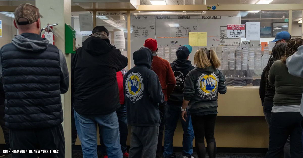 ► From the Seattle Times — At Port of Seattle, rocked by tariffs, there were 70 jobs for 600 workers — On many mornings, Sarah Esch’s job as a dispatcher for dockworkers at the Port of Seattle boils down to a question of simple, frustrating math. “No ships came in last night, so we have maybe 70 jobs today for 600 workers,” Esch said before dawn on a recent Monday, eyeing the whiteboard used to track available shifts. “Those numbers aren’t great.”…Through November, the total number of shipping containers that passed through the ports in Seattle and Tacoma was down almost 4% from 2024. That figure may not seem so bad, but it is skewed by an unusual spike in imports during the first quarter of 2025, as shipping companies rushed goods into the United States before potential tariffs. Since August, the monthly drop in traffic has been in the double digits compared with 2024. There was no pre-Christmas rush.