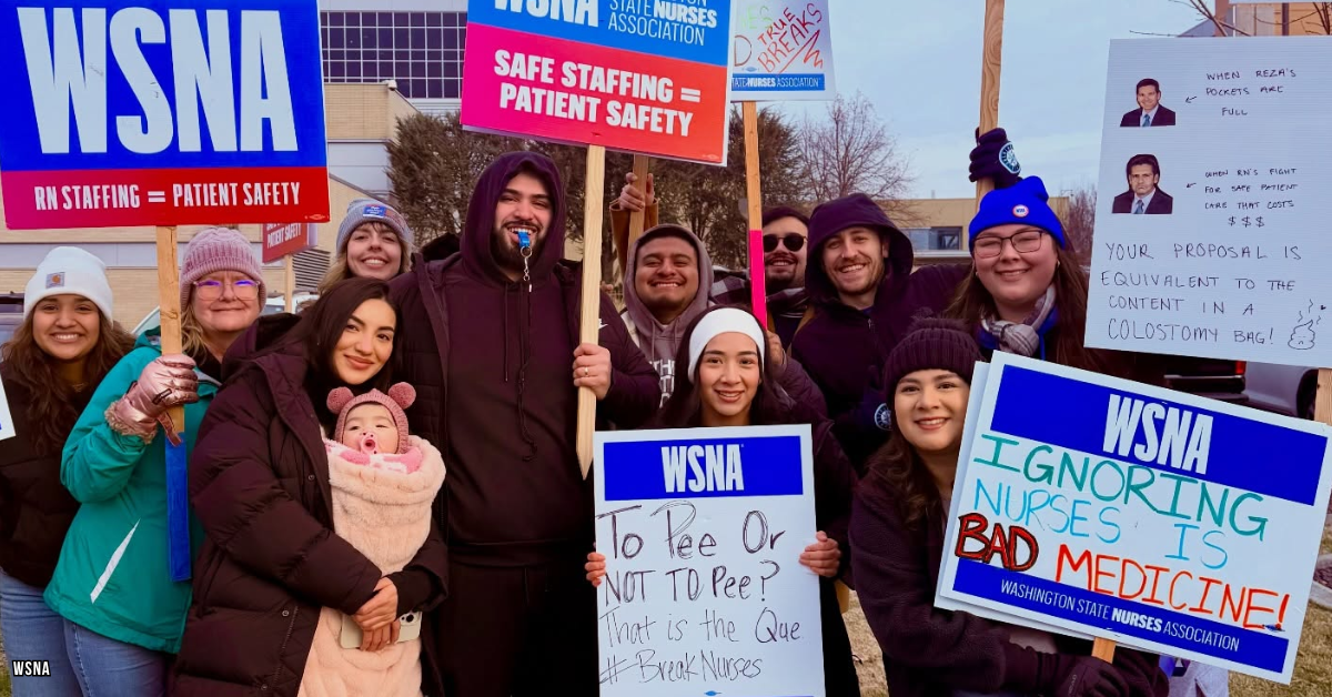 ► From KEPR — Nurses picket at Kadlec Regional Medical Center over safety, staffing and breaks — Alexis Martinez, a cardiac and acute care nurse at Kadlec, said she misses meal breaks on most shifts and frequently stays hours past the end of her scheduled workday to finish charting and patient care. “We’re all drowning in there,” Martinez said. “So, yes, of course, we help each other out but it’s still not okay for other people just to step up and miss everything, like lunches and breaks, just to help out the team member.” Martinez described situations in which nurses absorb additional patients so coworkers can take lunch, sometimes caring for eight or nine patients at once. When certified nursing assistants are also on break, staffing is reduced even further, leaving nurses juggling patient safety, basic care, and documentation.