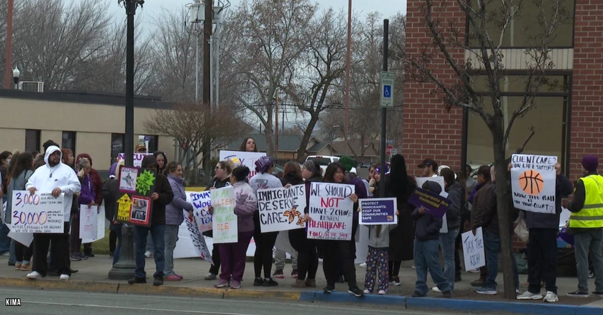 ► From KIMA — Yakima rally protests potential Medicaid cuts — Leaders in Washington are facing a significant budget deficit, exacerbated by the One Big Beautiful Bill Act, which could lead to severe cuts impacting elderly immigrants and people with disabilities…In response, the Service Employees International Union Local 775, representing over 60,000 long-term care workers, organized a rally on Yakima Avenue. Caregivers voiced their concerns, emphasizing the critical role they play in their clients’ lives. “People can die. We are the majority of these folks that we provide care. We are their lifeline,” Brenda Morgan said.