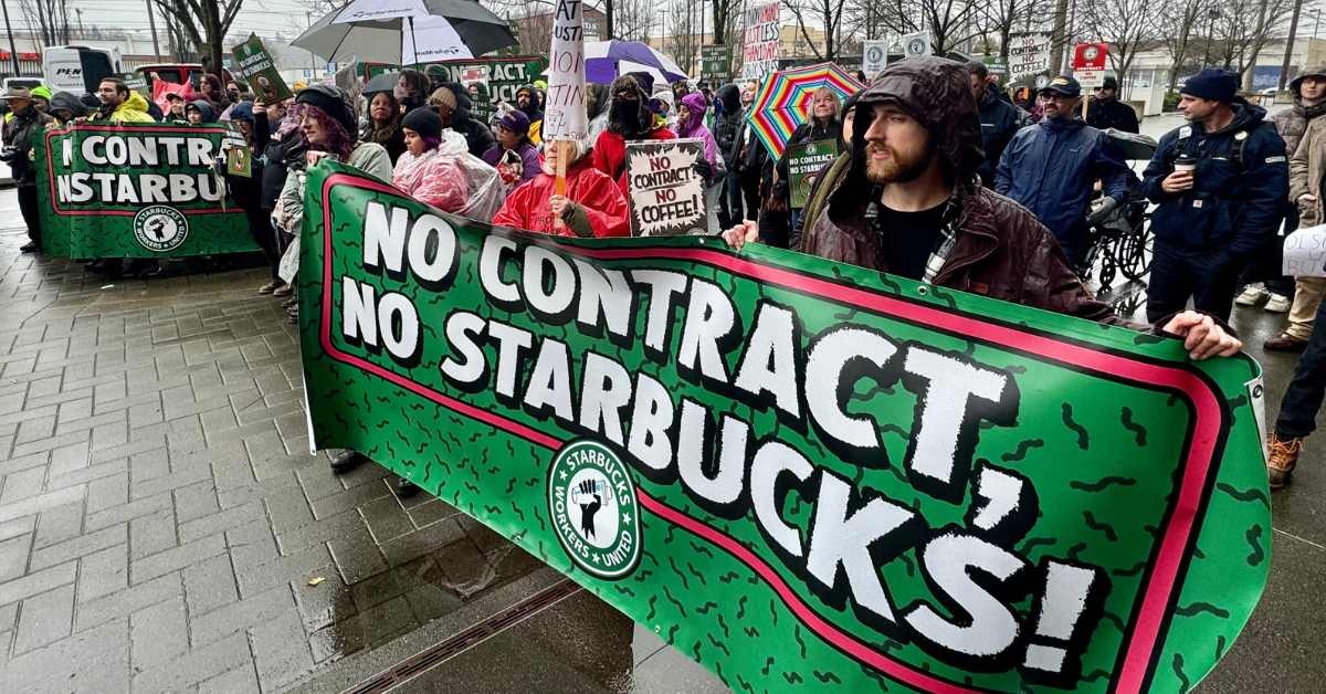 SEATTLE, WA (February 10, 2026) — Starbucks workers across dozens of cities, including Seattle, have been on strike for more than 80 days, taking action to win a first contract with a company accused of hundreds of unfair labor practices. Citing bad-faith bargaining, unsafe working conditions, and patterns of mistreatment by management, workers have maintained strike lines across the U.S. throughout the winter months, braving the elements to secure a first contract.