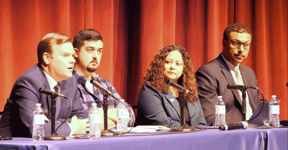 Panelists from left: Neil Hartman (UA), Rian Watt (Economic Opportunity Institute) , Nikki Gomez (WFSE), Djibril Diop (WEA).