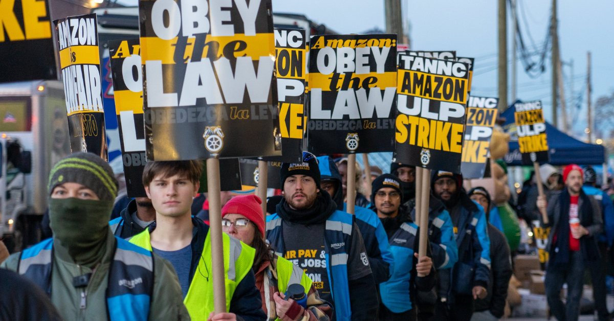 Amazon Teamsters on strike in December 2025. Photo: Teamsters